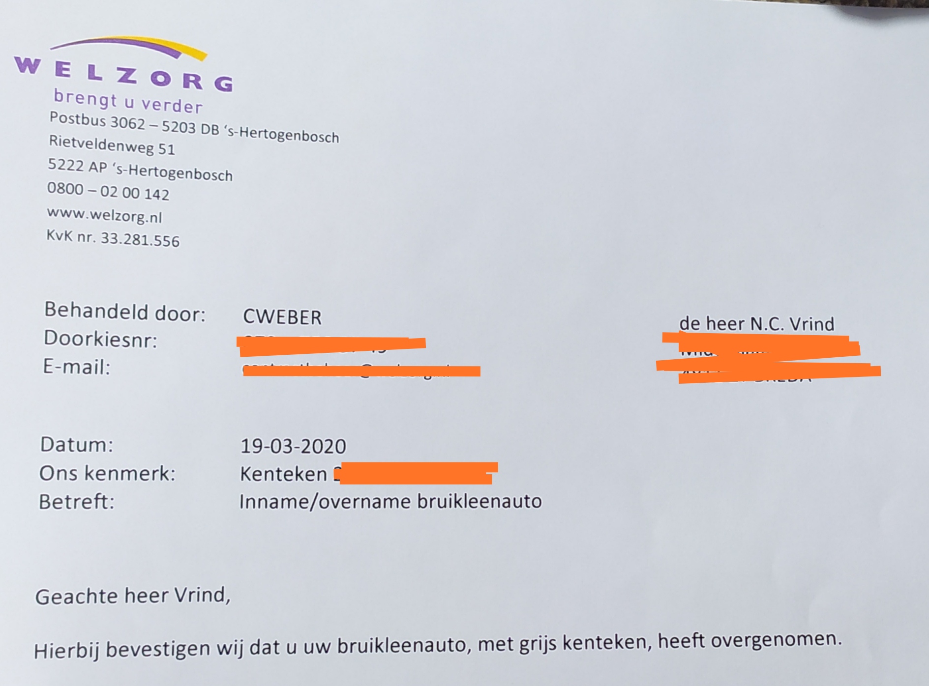 Woehoe! Kijk dan! Deze brief kreeg ik gisteren in de bus. De auto staat nu officieel op mijn naam!! Het staat er echt! Zwart op wit! Het is definitief! Het is gelukt! Wauw!